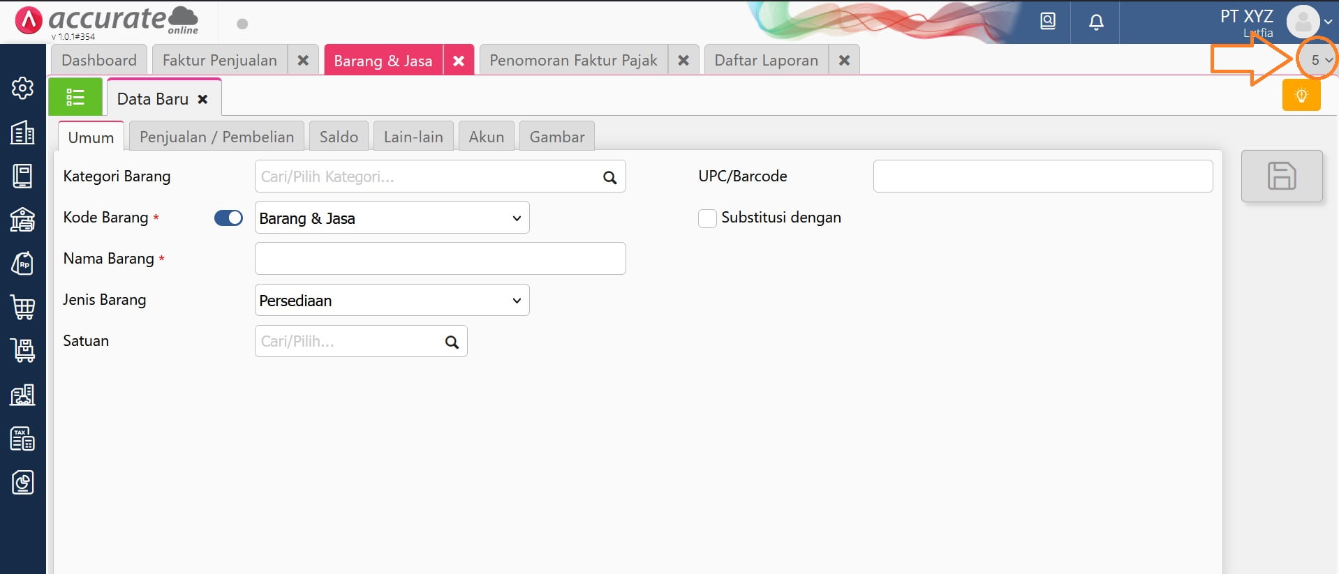 Pada Accurate Online terdapat kemudahan bagi Anda untuk berpindah dari satu tab formulir ke tab formulir yang lain, apabila Anda sedang membuka banyak tab atau formulir.